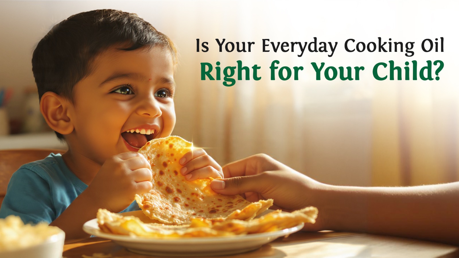 “Little tummies need smart cooking – oil light, rich in care.”