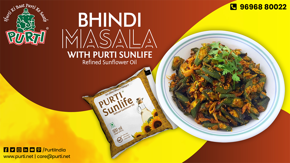 – In a heavy Kadai or pan or skillet, heat 2 tablespoons oil and add the chopped okra. You can use Purti Sunflower Oil.