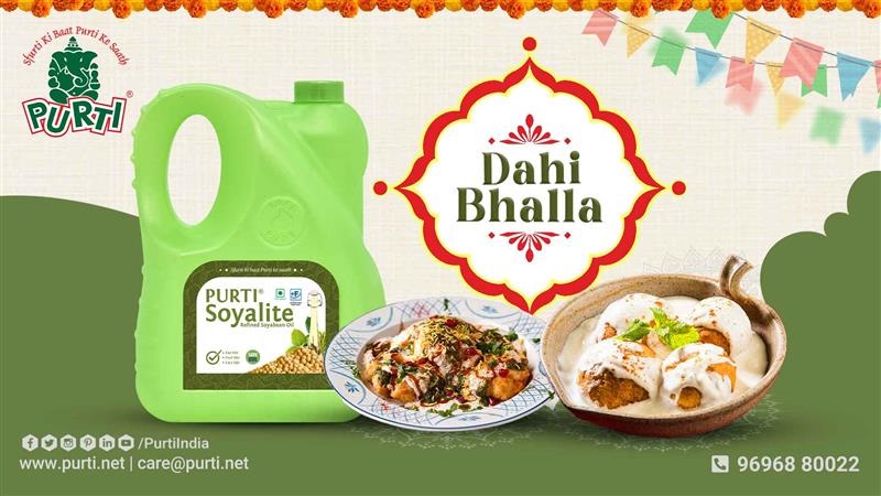 Prepared traditionally during festivals like Holi, Diwali, or family get-togethers, Dahi Bhalla is a perfect harmony of texture and taste – soft, spongy bhallas soaked in creamy yogurt and topped with aromatic spices. And when made with Purti Soyalite Refined Soyabean Oil, the bhallas turn out light, non-greasy, and healthier without compromising on flavor.