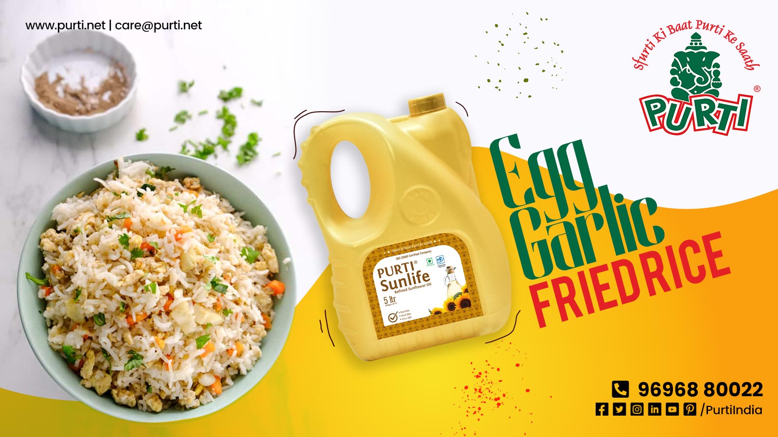 Step 1: Heat Purti sunflower oil in a pan on medium flame and add the chopped garlic to it. Cook until light golden.
