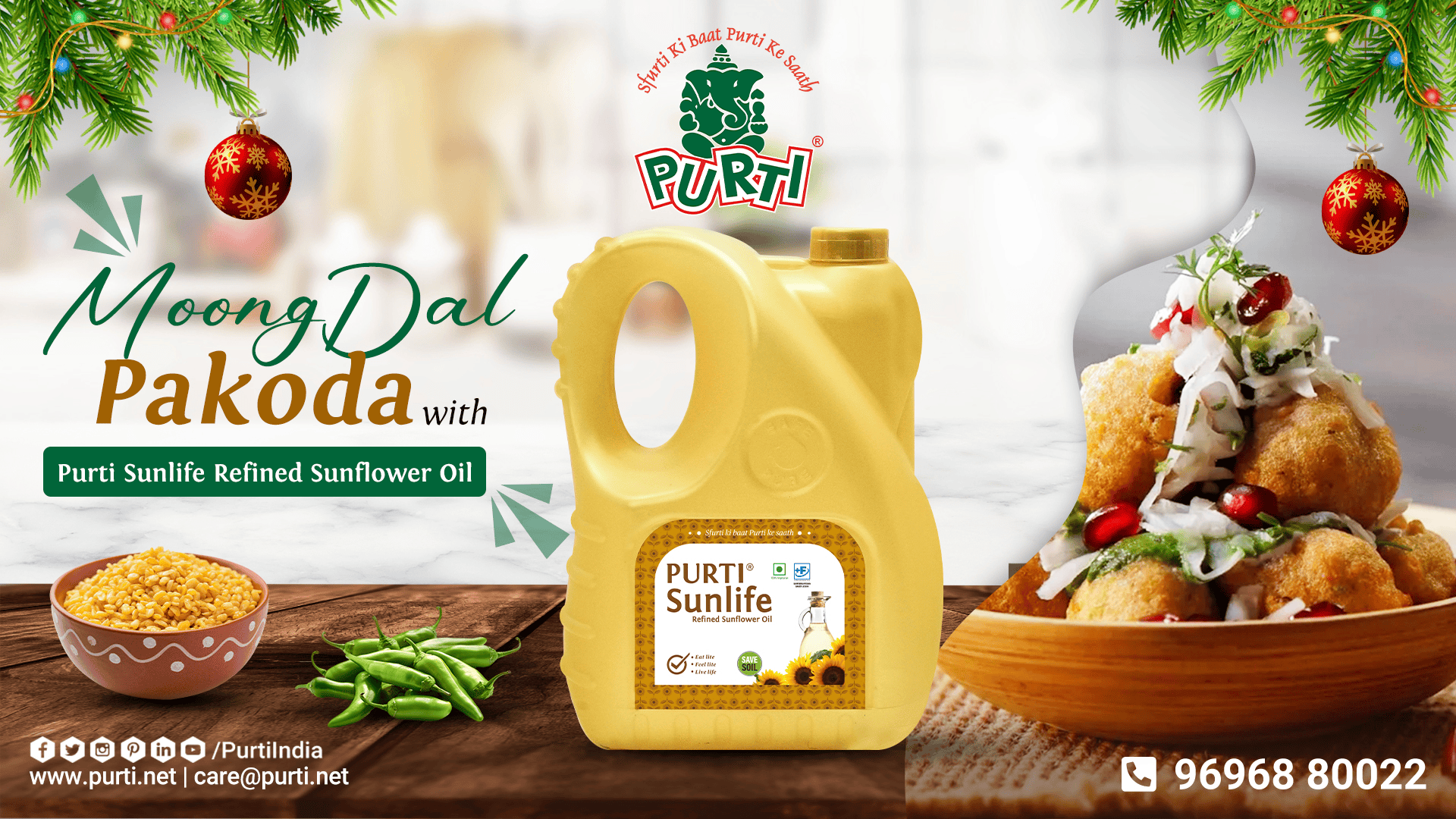 • Once the Purti Sunlife Refined Sunflower Oil is hot, carefully drop spoonfuls of the batter into the Purti Sunlife Refined Sunflower Oil.