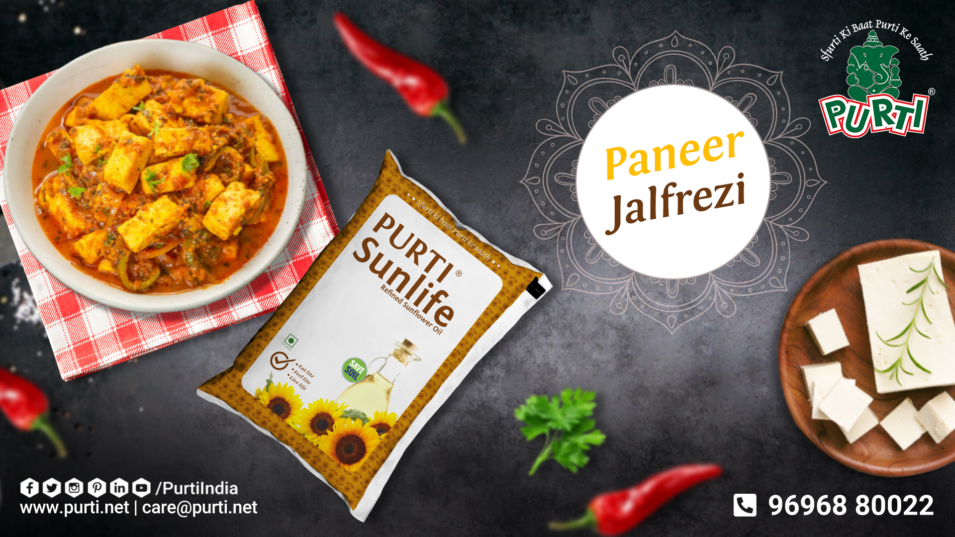 • 2 tablespoons oil – neutral flavored Purti Refined Sunflower Oil – neutral flavored