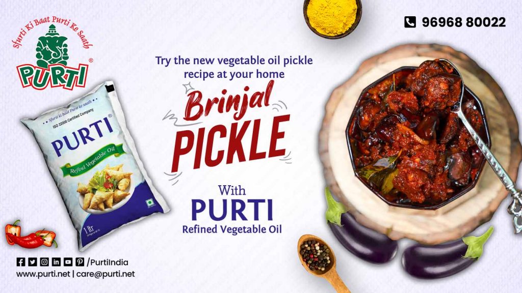 Try the new recipe of brinjal pickle with purti refined vegetable oil at your home